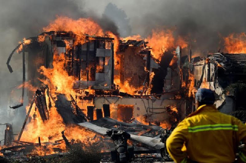 ビバリーヒルズに住宅を保有するトランプ大統領は、火事で被害を受けたカリフォルニアの人々への祈りと緊急対応の職員らへのねぎらいをツイートした。