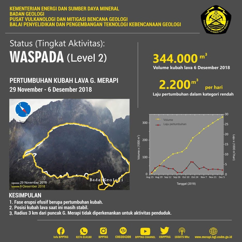インドネシアのメラピ山の溶岩ドームも膨張を続けています。